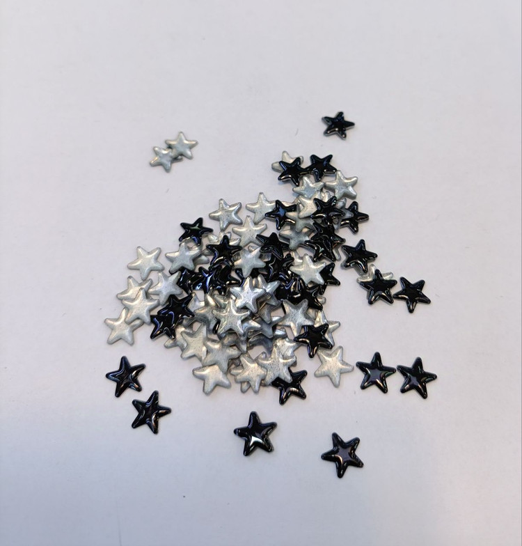 نگین حرارتی پشت تخت طرح ستاره رنگ مشکی اندازه یک سانتیمتر شما میتونید هم با چسب قطره ای بچسبونین هم با حرارت اتو یا حتی با شمع یا فندک به دلیل اینکه نگین پشتش صاف هست مناسب هست برای انواع لباس و لباسهای مجلسی زنانه و مردانه کیف و کفش و صندل وتابلو و مجسمه قاب موبایل ماگ لیوان و هر سطحی که دوست داشته باشین