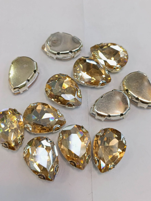 نگین پایه دار دوختنی پایه برنجی ۱۳در ۱۸ میلیمتر که پایش نه زنگ میزنه و نه سیاه میشه باخیال راحت رو لباسهای مجلسی میتونین کار کنین در صورتی که تعداد بالا سفارش داشته باشید میتونین با فروگاه تماس بگیرین تا به شما قیمت عمده داده بشه