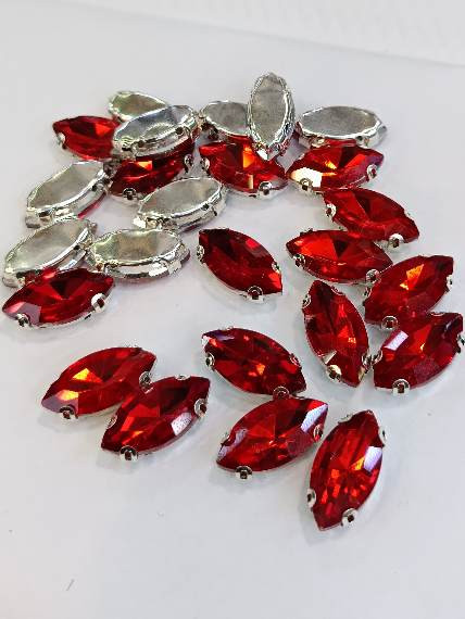 نگین پایه دار دوختنی پایه برنجی ۹در۱۸ میلیمتر قرمز