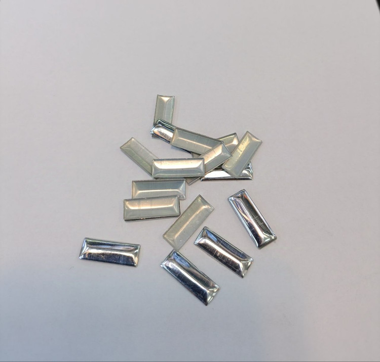 نگین حرارتی پشت تخت رنگ نقرهای اندازه ۳در ۱۰ میلیمتر جنس آلومینیوم شما میتونید هم با چسب قطره ای بچسبونین هم با حرارت اتو یا حتی با شمع یا فندک به دلیل اینکه نگین پشتش صاف هست مناسب هست برای انواع لباس و لباسهای مجلسی زنانه و مردانه کیف و کفش و صندل وتابلو و مجسمه قاب موبایل ماگ لیوان و هر سطحی که دوست داشته باشین