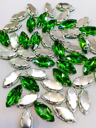 نگین پایه دار دوختنی پایه برنجی ۹در۱۸ میلیمتر سبز سیدی
