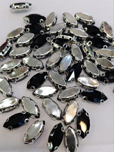 نگین پایه دار دوختنی پایه برنجی ۷در۱۵ مشکی