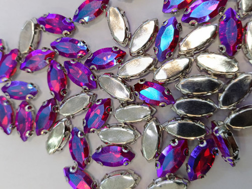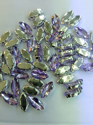 نگین پایه دار دوختنی پایه برنجی ۷در۱۵ یاسی ۷رنگ