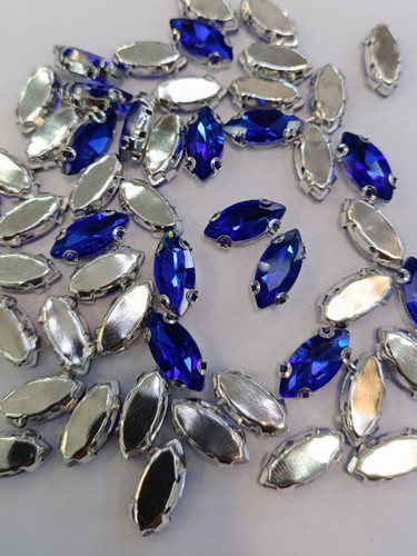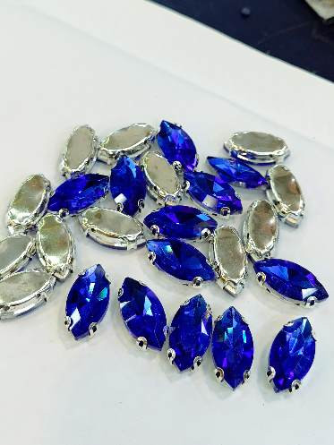 نگین پایه دار دوختنی پایه برنجی ۹در۱۸ میلیمتر ابی کاربنی