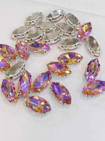 نگین پایه دار دوختنی پایه برنجی ۱۳در۱۸ میلمتر سفید ۷رنگ