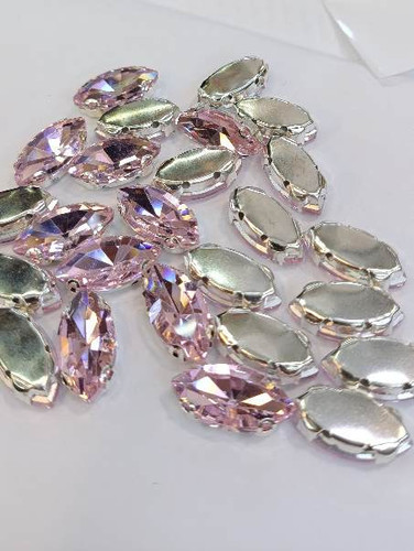 نگین پایه دار دوختنی پایه برنجی ۹در۱۸ میلیمتر صورتی ۷رنگ