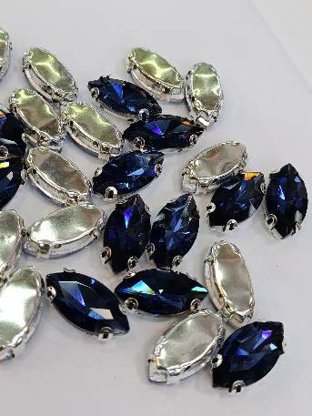نگین پایه دار دوختنی پایه برنجی ۹در۱۸ میلیمتر سورمه ای