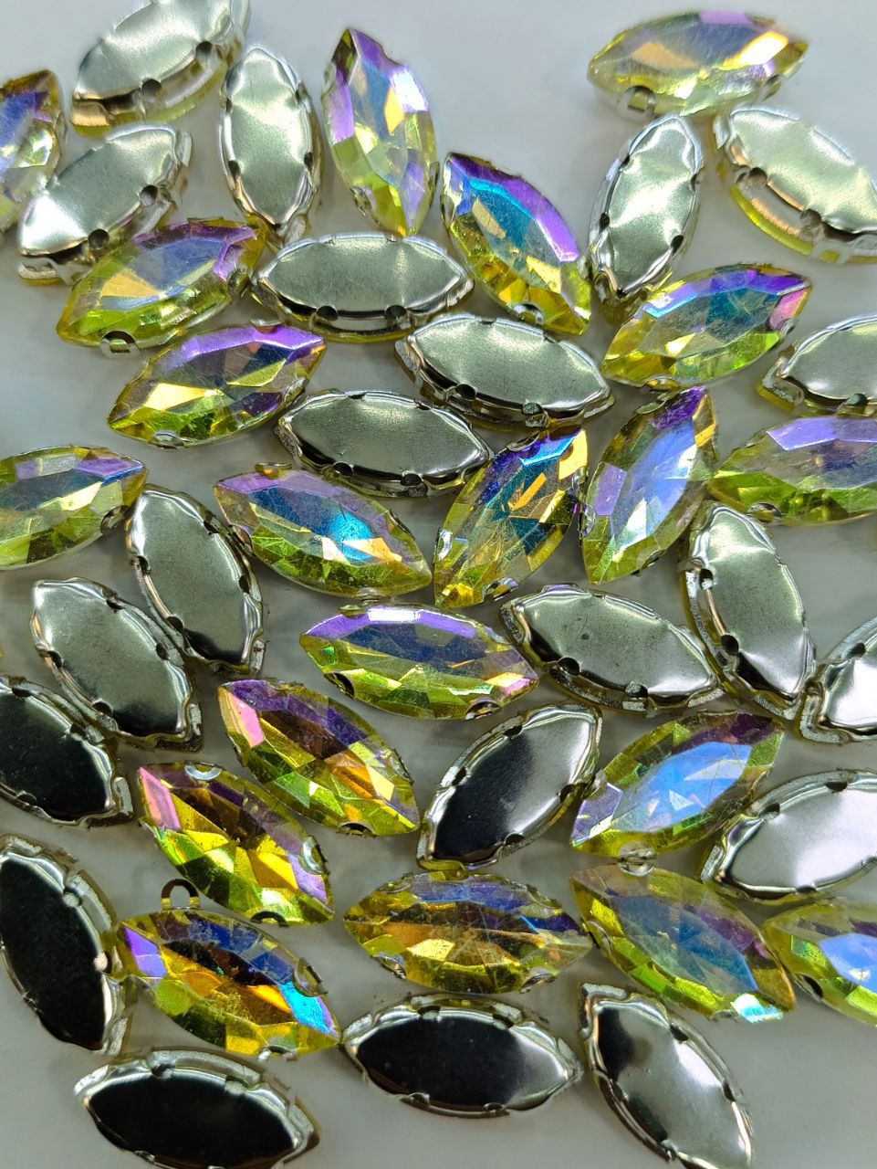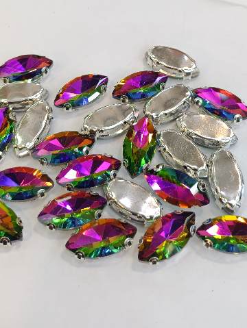 نگین پایه دار دوختنی پایه برنجی ۱۳در۱۸ میلمتر سفید ۷رنگ